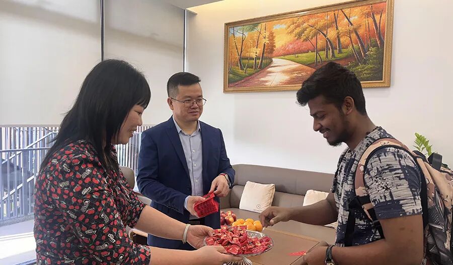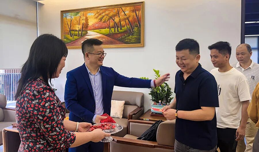 在欢声笑语中,唐总为同事们派发了喜悦的红包。